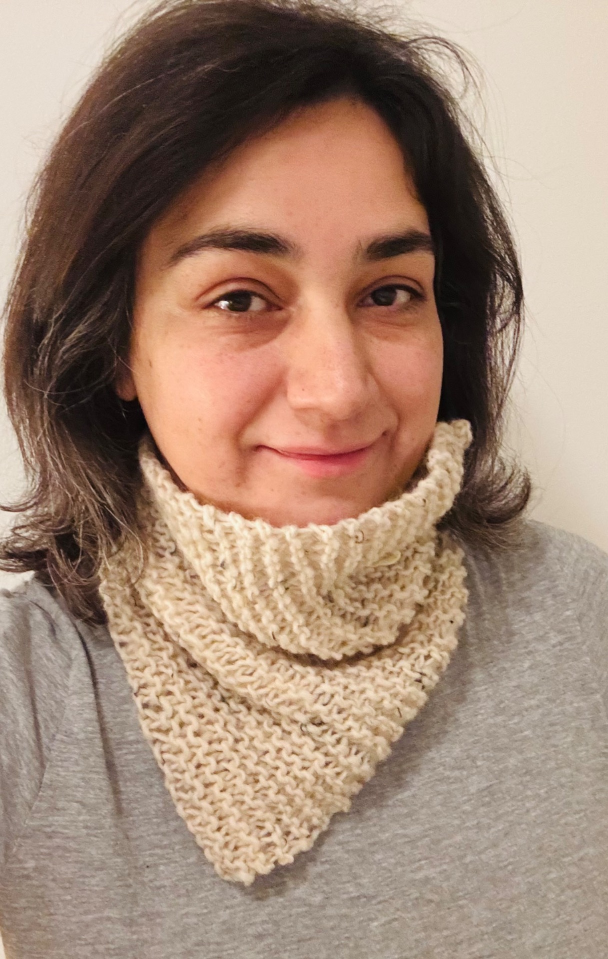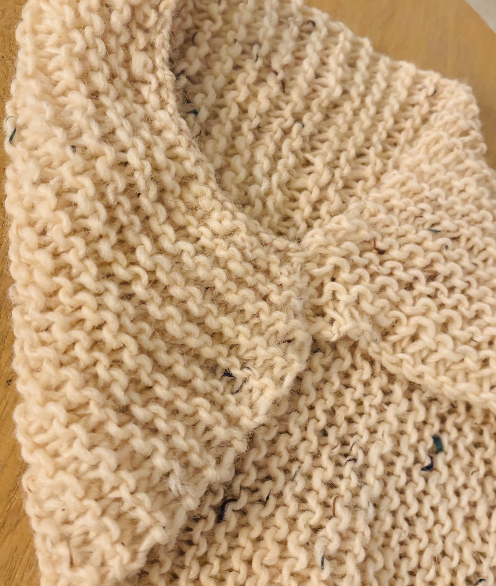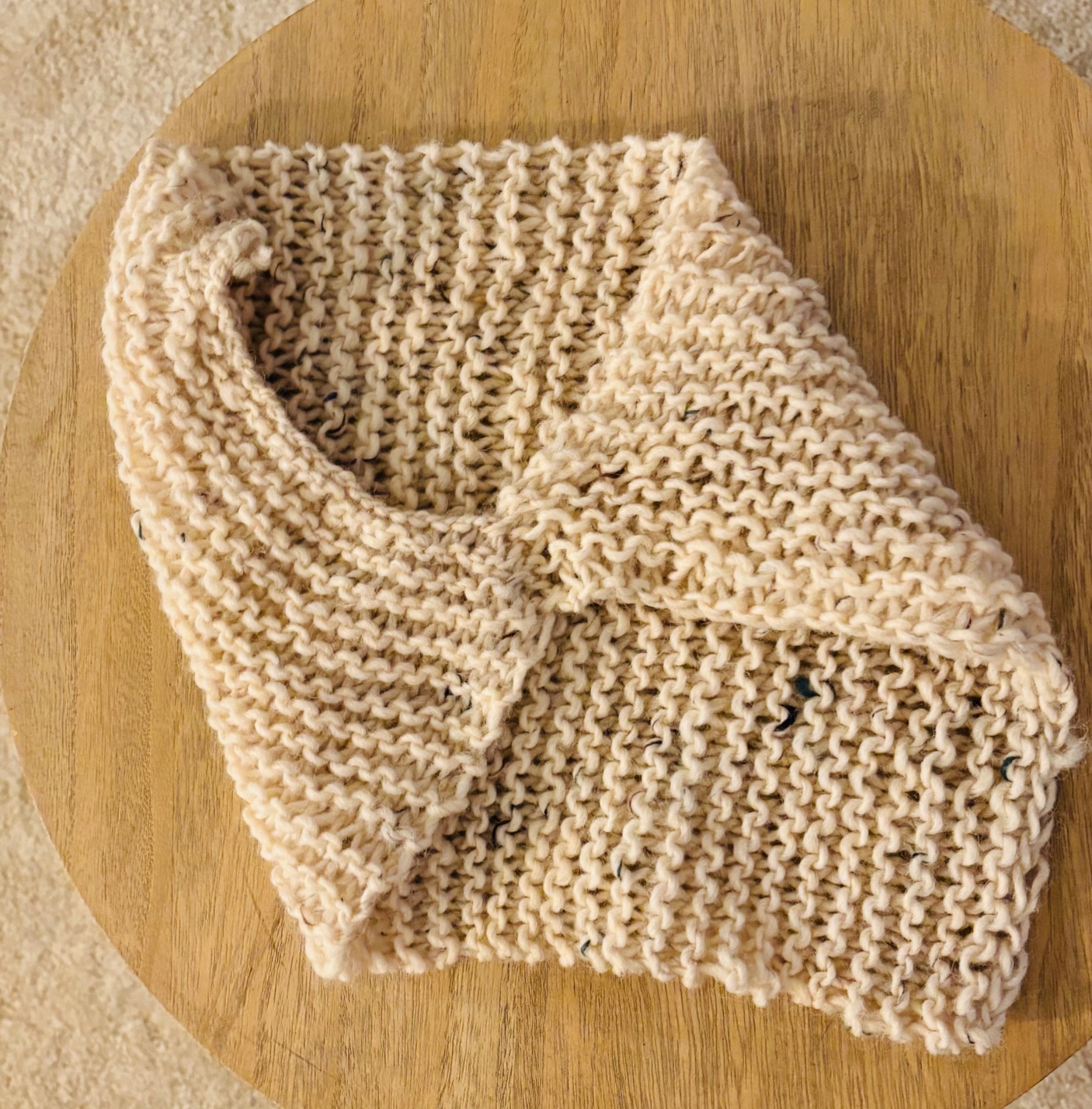 En handstickad halskrage i en ljus, neutral färg. Den har en enkel, men ändå elegant design som passar bra till många olika stilar. Halskragen är stickad i ett tätt mönster som ger värme och komfort. 85% ull, 10% akryl och 5% viskos.