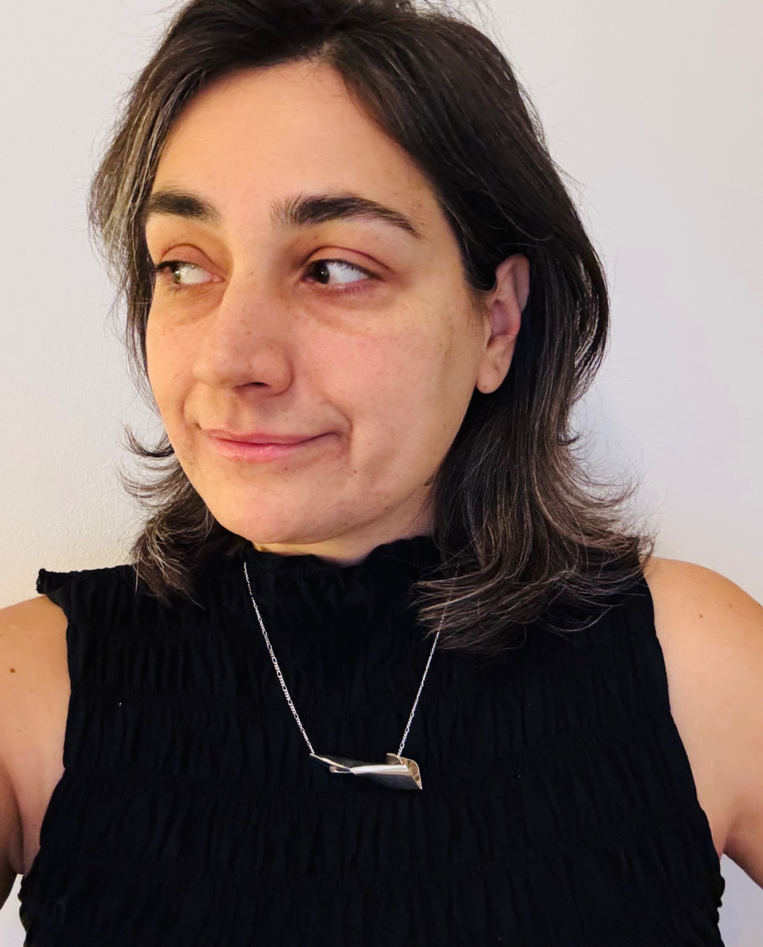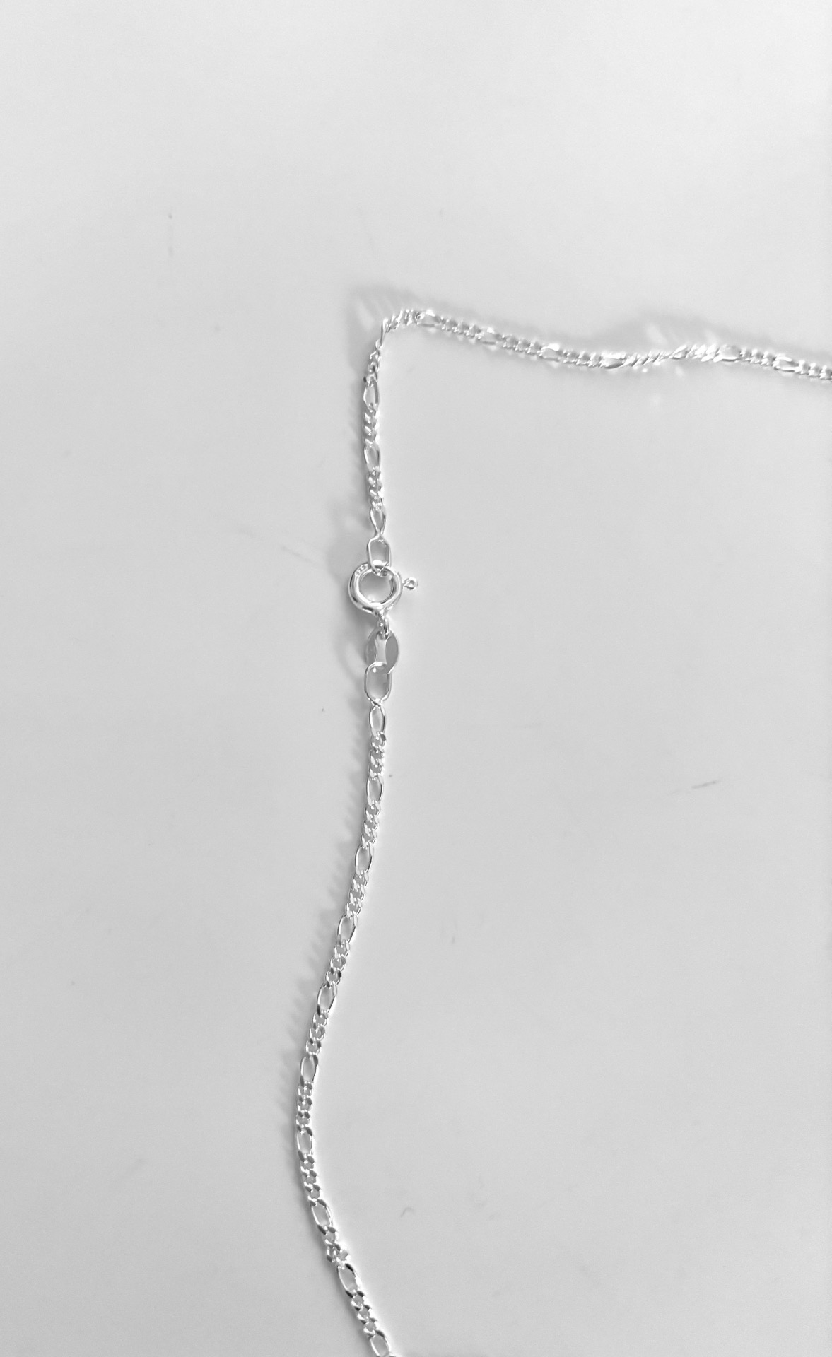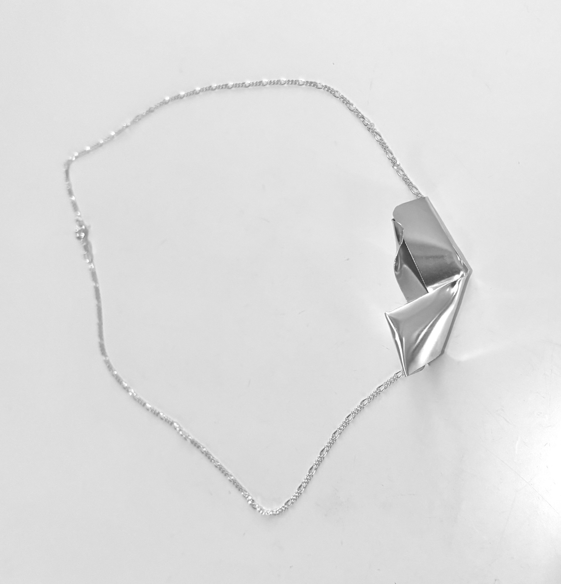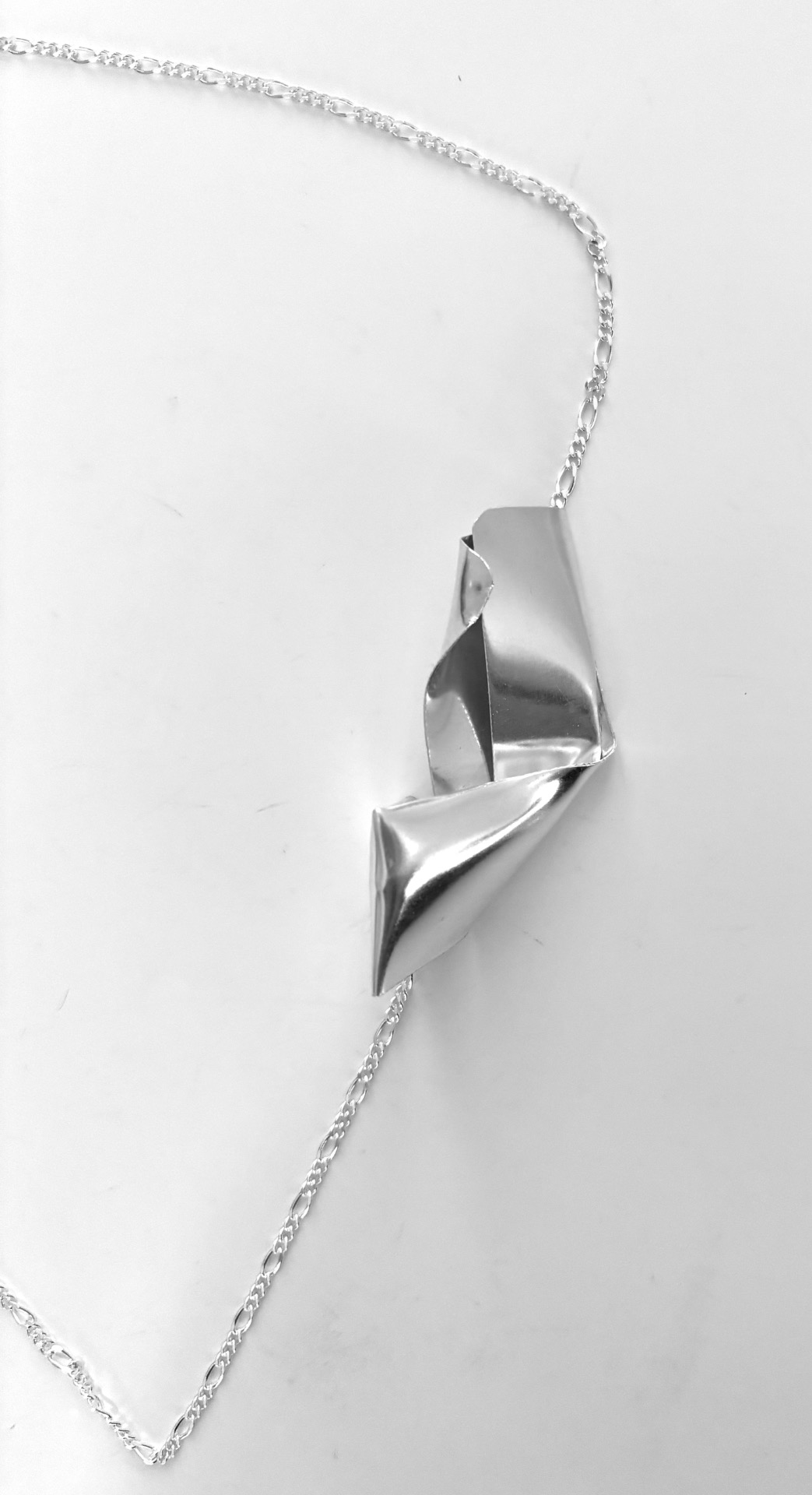 A stylish silver necklace with an abstract pendant. The necklace has a figaro chain in length 50cm with a secure clasp. Perfect for adding a tough touch to your outfit.