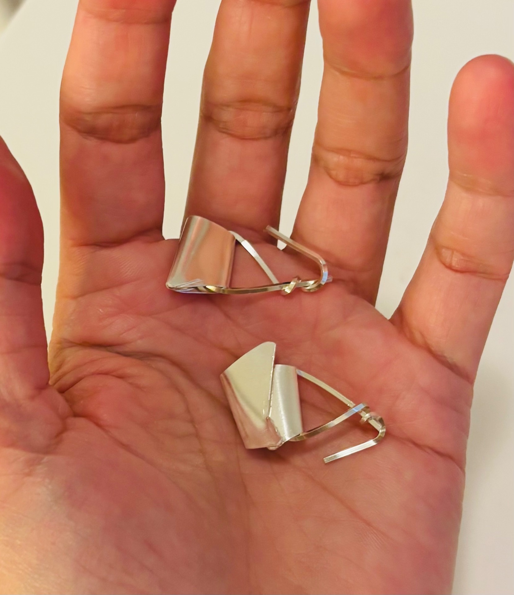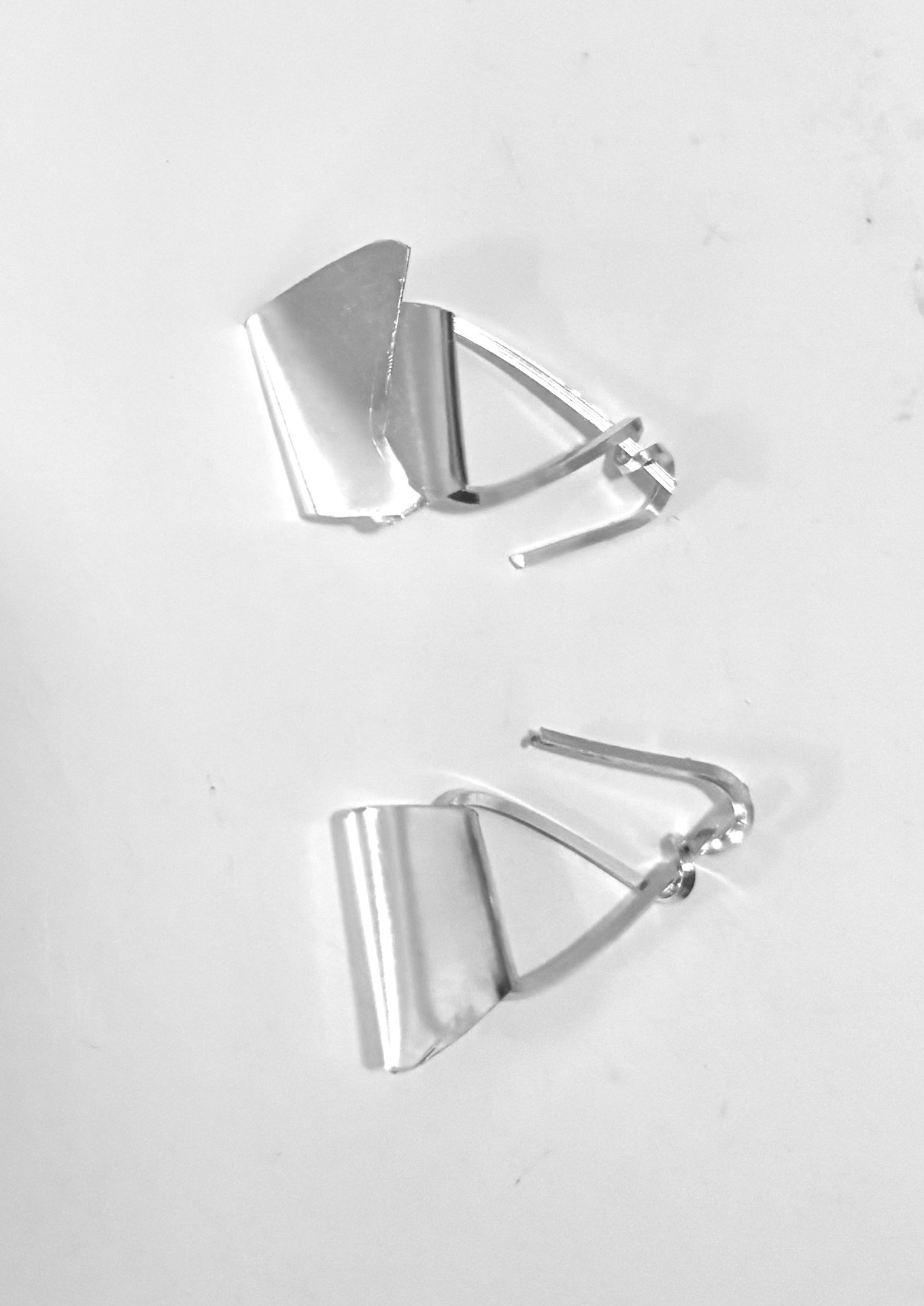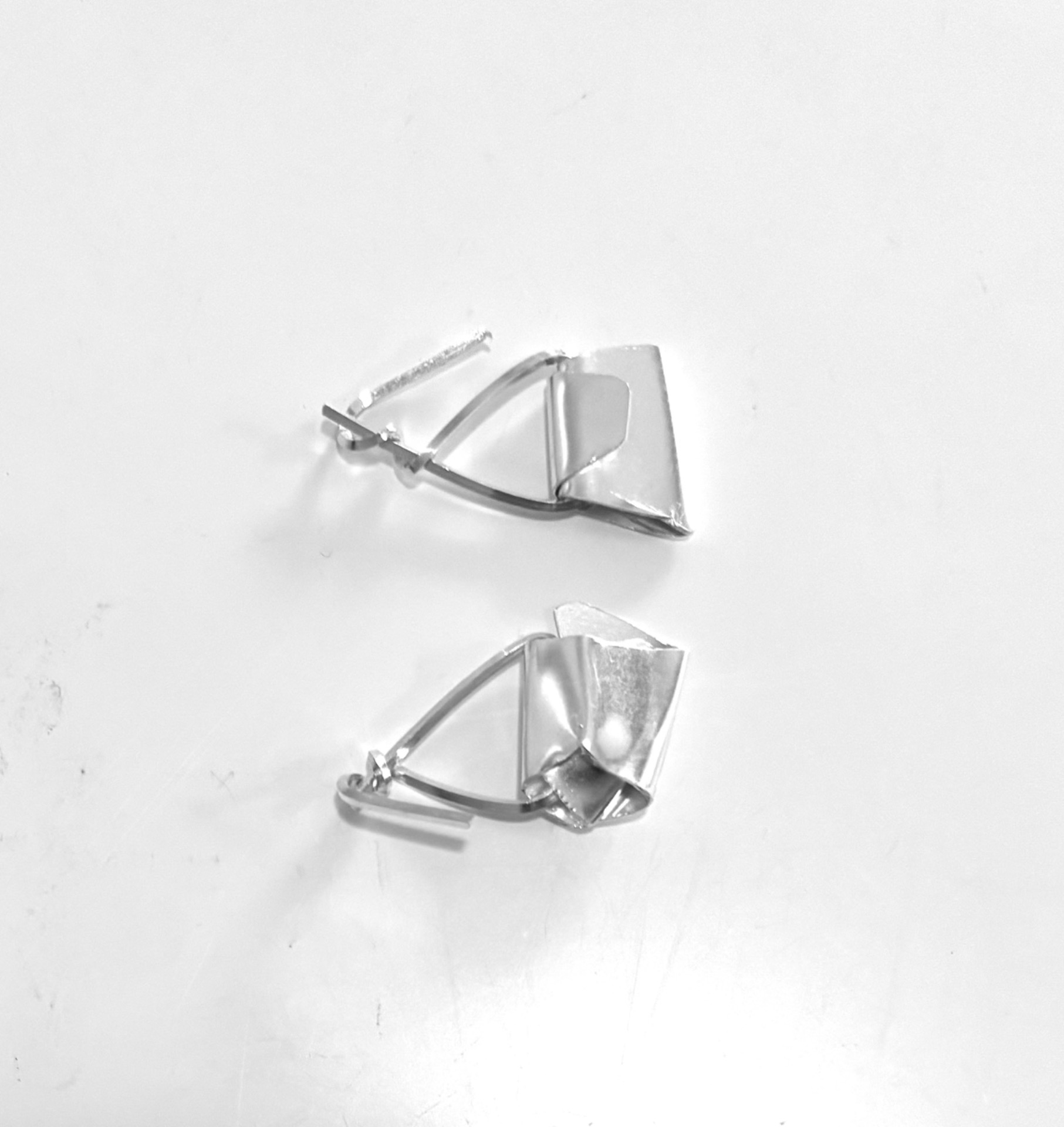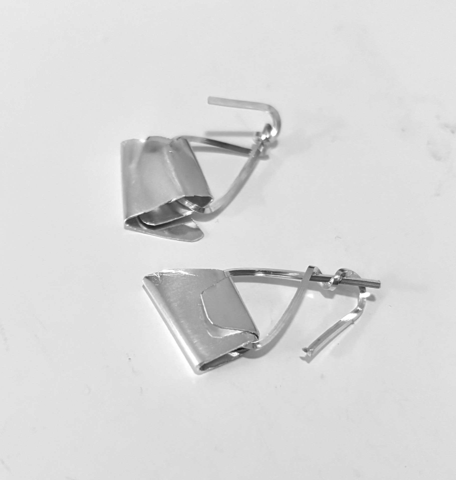 Ett par silver örhängen med en börs som design. Perfekt för att addera en sommar touch till din stil. Kollektion SS26.