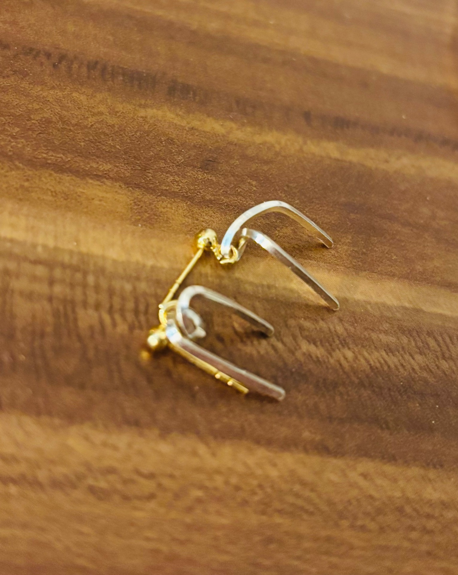 Ett par handgjorda örhängen med stift är formade som vingar. Materialet är sterling silver 925 ihop med stift som är förgyllt sterling silver. Design: Sonja Vuletic.