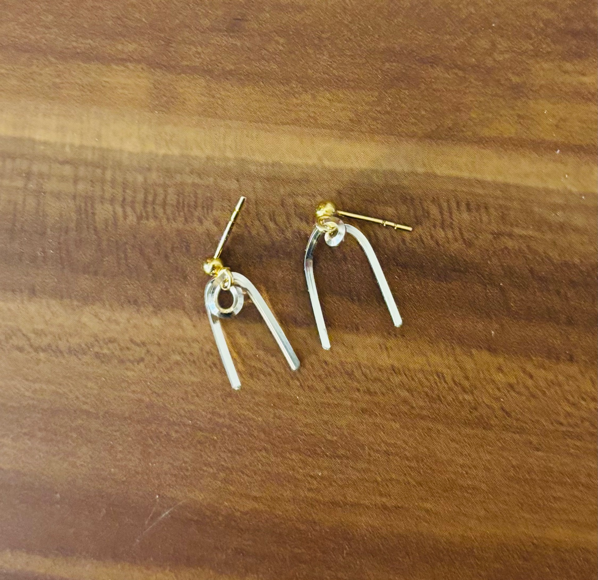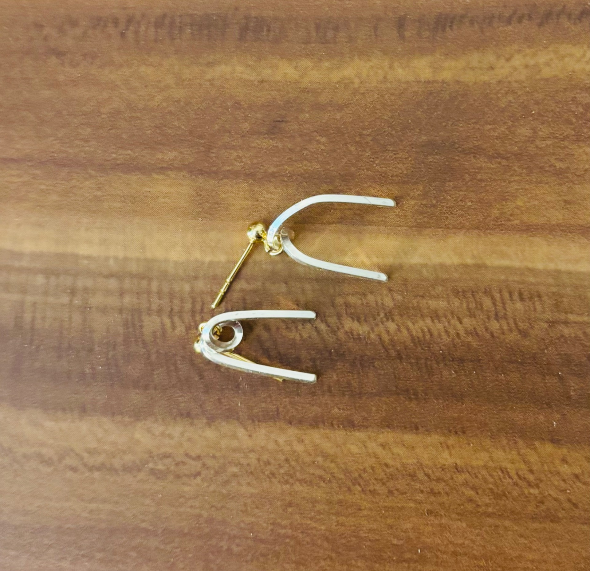 A pair of handmade stud earrings shaped like wings. The material is sterling silver 925 with studs that are gold-plated sterling silver. Design: Sonja Vuletic.